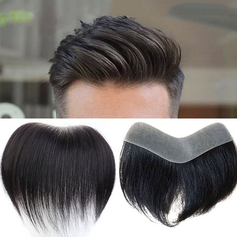 실리콘 전면 피부 Pu 시스템 1.5x16cm 블랙 스트레이트 남성 인모 자연 라인 100% 전체 Pu V 루프 헤어 라인 남성용 가발