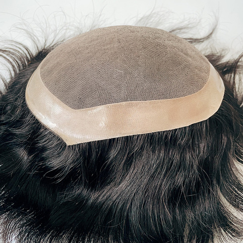 100% 인도 자연 인간 남성 모발 교체 시스템 모노 푸 스트레이트 웨이브 보철 헤어 패치 남성 가발 남성용 가발