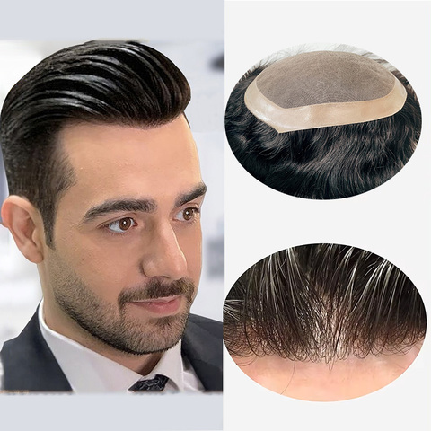 가발 진짜 인모 얇은 피부 모노 NPU베이스 스트레이트 버진 헤어피스 헤어 교체 시스템 남성용 그물베이스